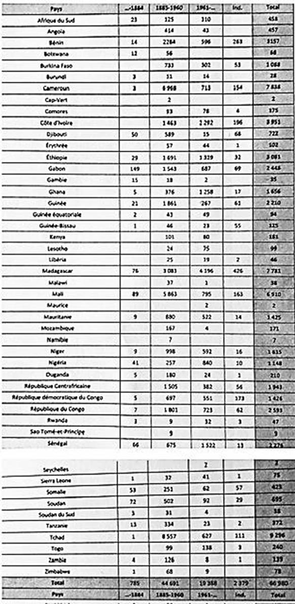 15. See annex IV for list of number of African artefacts, per country, in Musée du Quai Branly.