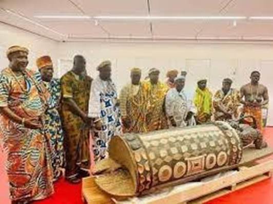 The French National Assembly has finally approved on 7 July 2025 the restitution to Côte d'Ivoire of the talking drum Djidji Ayôkwé, which the French Army stole from the Ebrie people in 1916. (1) The ten-foot-long and 430- kilogram drum was used to send messages from one area to another, for example, about the movement of the French Army. Ivory Coast asked for the return of this drum, along with 148 other looted items, in 2018, but the demand for the return of this communication and spiritual instrument goes as far back as 1960. (2) France delayed the restitution because of the French rule of inalienability, which prevented returning objects in state possession without a specific legislation authorising an exception to the general ban. (3)